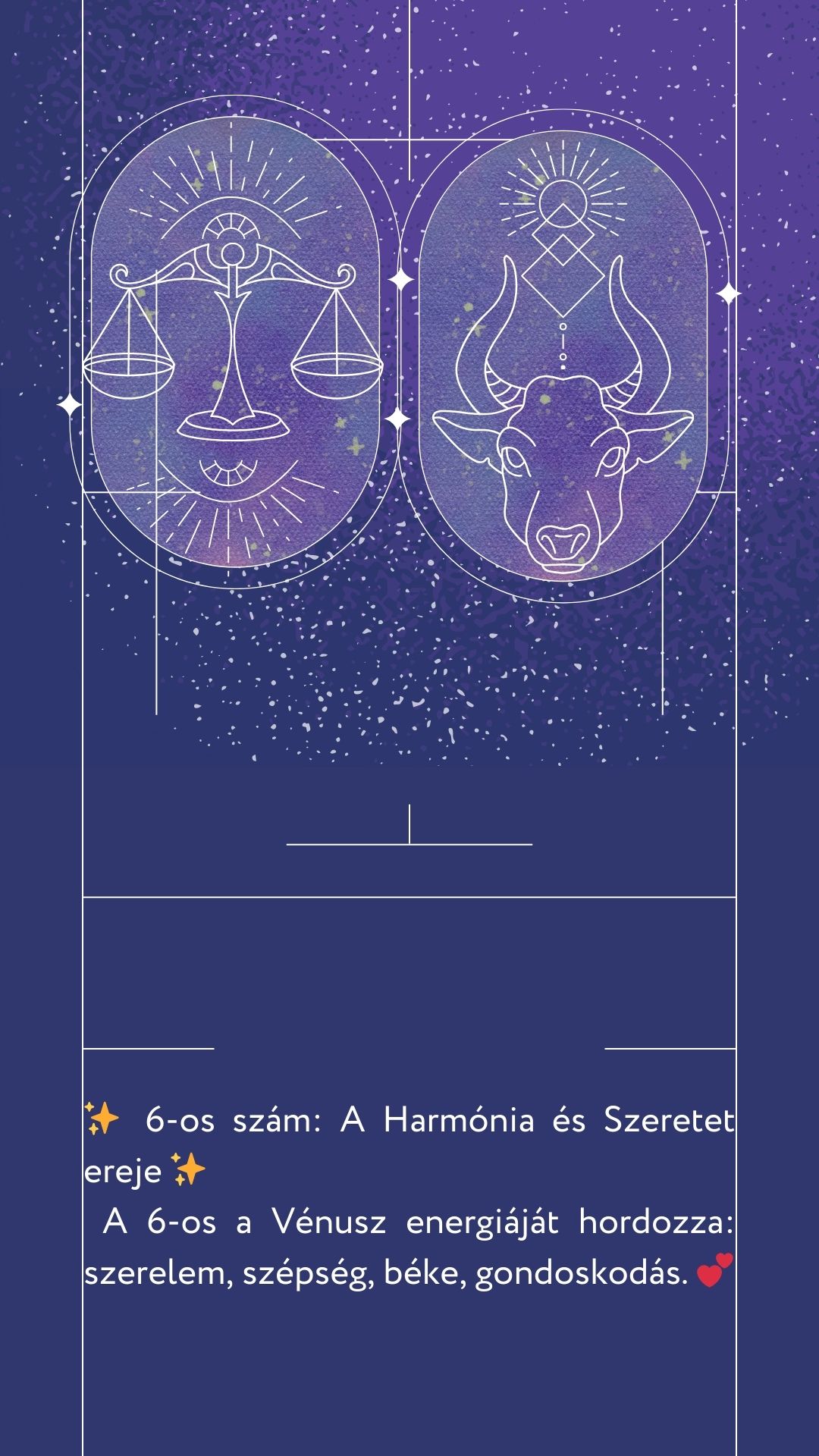 A 6-os a Vénusz energiáját hordozza magában – a szépséget, a békét, a termékenységet és a szeretetet. Ez a szám a harmónia, az egyensúly és a gondoskodás jelképe. Analóg a Bika és a Mérleg jegyével, így egyszerre földies és érzelmes: stabilitást keres, de közben a szív dolgai is nagyon fontosak számára.